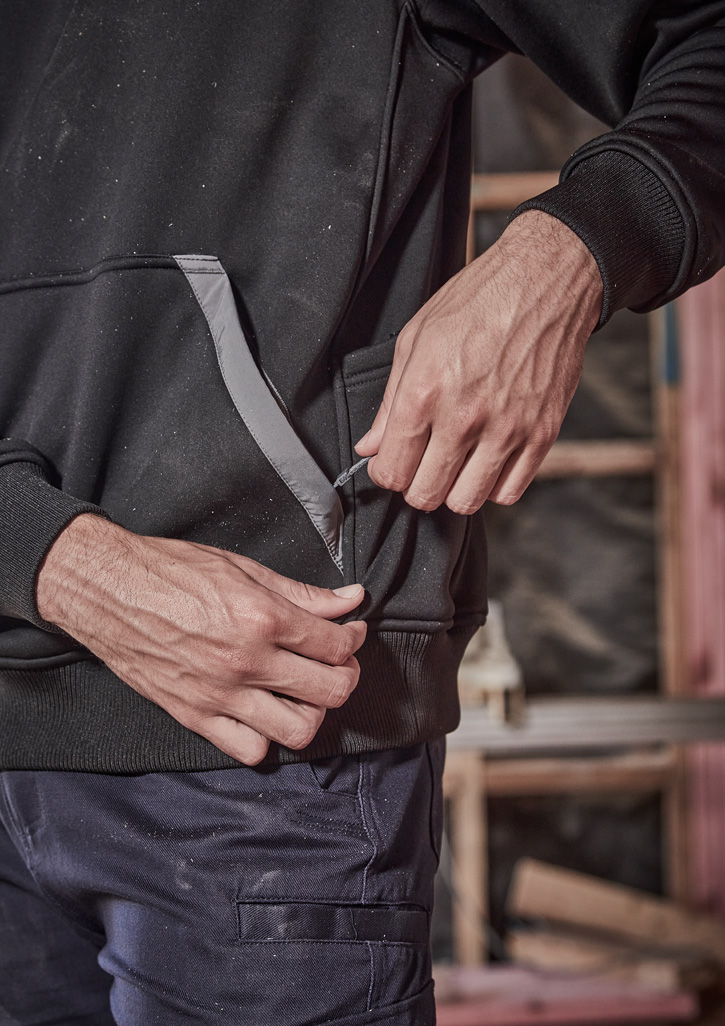 - Kangaroo pockets with zip closures to safely store all your items
